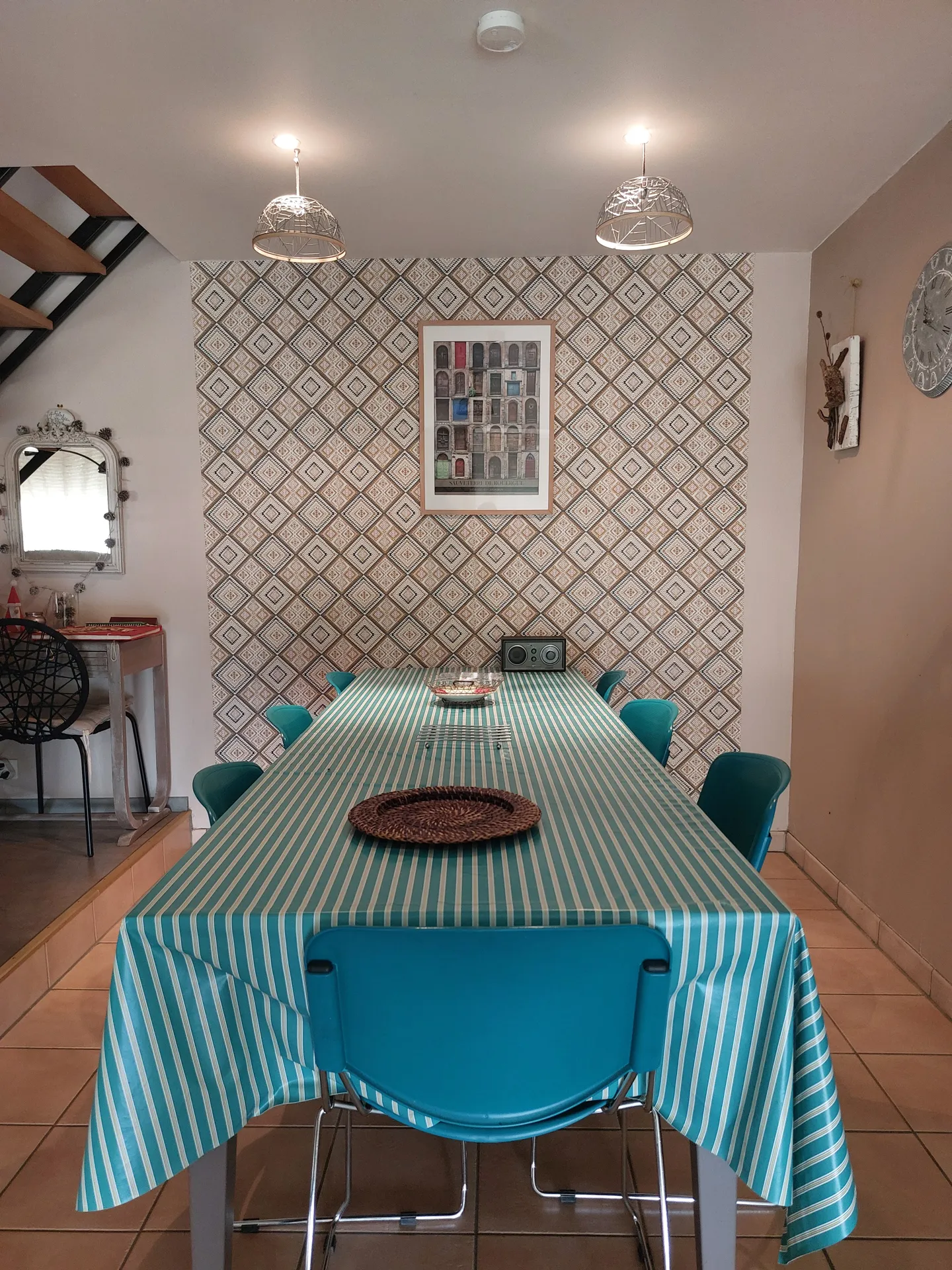 Grand séjour, cuisine, 3 chambres (1 lit 160, 2lits 140, 2 Lits 90, plus canapé); elle bénéficie de tout le confort électroménager (tv lave linge sèche linge micro onde) connexion internet, climatisation. Jardin arboré, salon de jardin et barbecue, espace pétanque pour les amateurs.