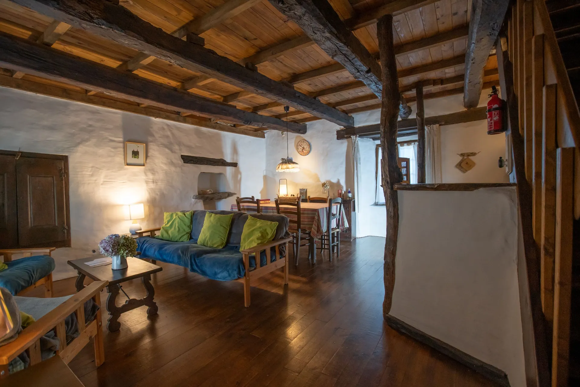 Accès (gratuit) à la buanderie commune avec deux lave-linge et un sèche-linge, mise à disposition d’une panière à linge ; étendoir à linge extérieur (+ étendoir pliant dans le gîte).